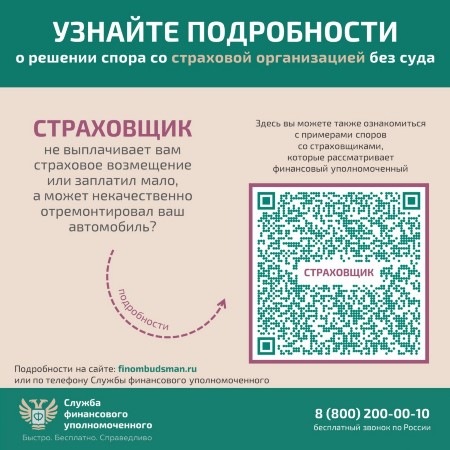 Ознакомиться с подробной информацией о разрешении споров со страховыми организациями можно на сайте finombudsman.ru в разделе «База знаний» по ссылке.